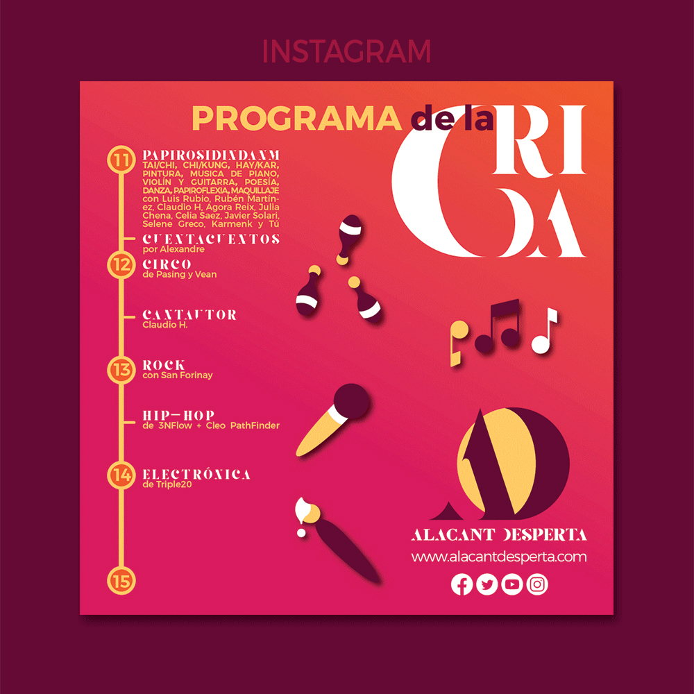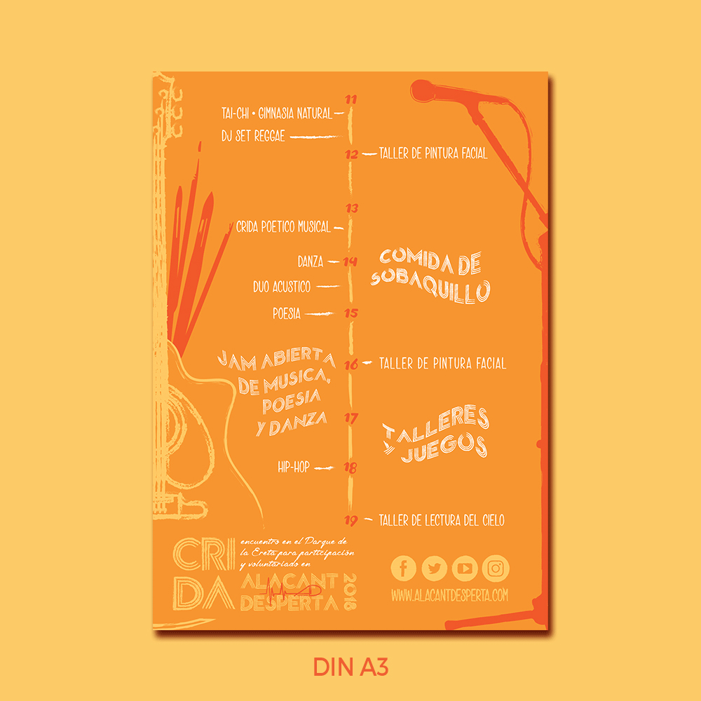 Collaborating with the no-profit association Alacant Desperta from March 2017, I designed logos, flyers, event programs, signage and set decorations. I also usually perform as a face painter and I teach in upcycle workshops.